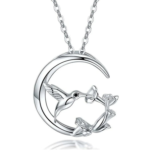 Vintage Vogel und Mond Silber Anhänger Halskette