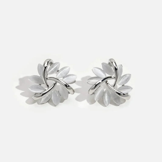 Elegante opalweiße Ohrringe mit Perle in Gold